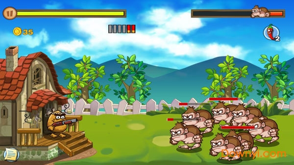 塔防休闲小游戏,森林里的小动物们发狂了,正在围攻土豆先生的小木屋,而你,小木屋的守护者,赶紧拿起枪,为了保护小木屋和这片村庄,务必要打退动物们的攻击。土豆先生虽身处险境,却悠哉悠哉不紧不慢地的进行射击,而手捧地雷、炸弹的怪物们虽然也是一副不怕死的模样,但却又呆又萌,前仆后继地往土豆枪口上撞,本是满屏血腥的防御战,因为这些让人忍俊不禁的细节而变得轻松诙谐。