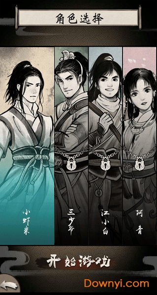 游戏四个角色,每个角色的江湖剧情是不一样的,玩家可以一一进行体验。