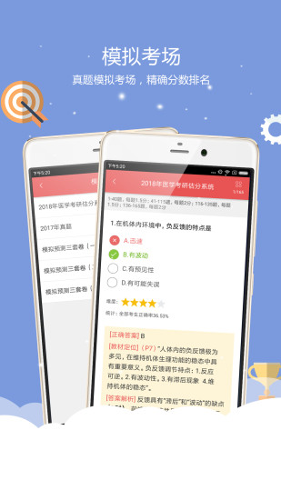 医学考研是由北京蓝基因科技有限公司开发的一款针对医学生考研的应用。蓝基因医学考研包含1988~2018年5150道真题,集医学考研题库、2019免费基础课程、考研经验等功能!实现手机随时随地教学!更有执业医师题库!