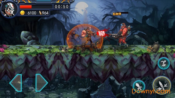 选择你要进入的挑战关卡,而每个关卡都有挑战此关的任务,完成挑战的任务目标便可获取三星评定,游戏中简单的操作方式可以更好的协助玩家达成通关挑战,这里只有前进和后退两种移动方式,其中还有跳跃按键可以让玩家跳跃更高位置,并且点击两下还能实现二段跳跃,同时游戏中除了远程作战武器外,还有近战的刀战模式,可以让你近距离与僵尸搏斗。
