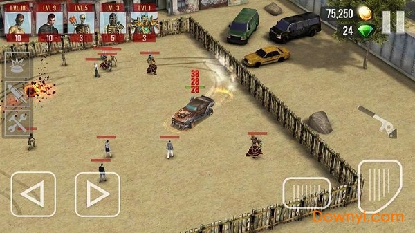 游戏里玩家将操控汽车在场地里想办法撞击掉所有的僵尸,僵尸会不断向汽车靠近,踩下油门甩开僵尸并用车头进行撞击吧!此外还可以对汽车进行改装,提高汽车的防御力和杀伤力,设置可以装备更加强力的武器。