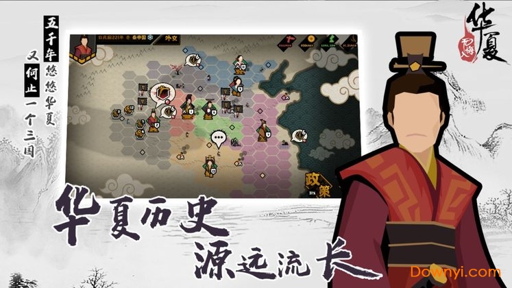无悔入华夏是一个以策略,国家发展,随机事件为主要玩法的单机游戏。游戏的画面风格采用了国风气息浓厚的水墨风格制作,玩家可以在这款游戏制定国家的各种战略方针。游戏中玩家可以通过外交取胜也可以通过战争取胜,随机事件的加入增加了游戏的变数,感兴趣的玩家不要错过了!