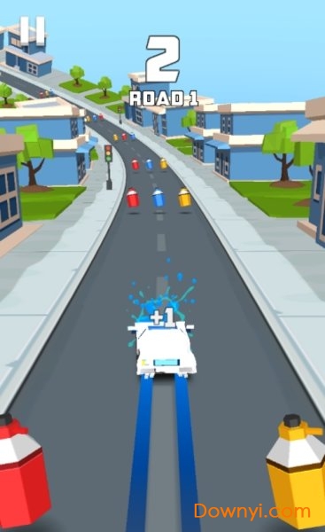 3、抓住并拖动你的车,躲避不同颜色的喷漆罐,以保持高速得分。
