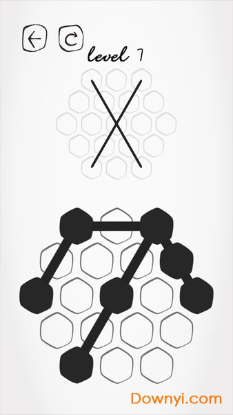 谜走点线是休闲挑战类烧脑游戏,比较考验的是玩家的空间推理能力,简洁的游戏画面中暗藏了重重难关,玩家需要在一个六边形方框中将绳子摆放为指定要求才能过关!