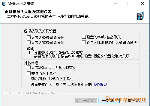 5、可以选择您需要进行安装的组件,包括了虚拟摄像头关联的设置、其他关联等,点击下一步;