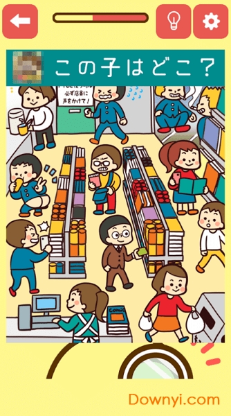 非常考验眼力的趣味游戏,玩家需要在各种各样的场景中找到小男孩,每一个地图都有一定的设置时间,快来接受挑战吧。咦~?那个孩子到底在哪里呢…?可以帮我一起找一下pyoo君在找的孩子吗?找的方法很简单。进入开放的舞台时,会显示一张插图。插图的上部映出了piyoon寻找的孩子!但是,舞台上设置了限制时间。在限制时间内请找出pyoo君在找的孩子!