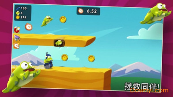 青蛙骑士游戏(ride with the frog)是一款休闲益智手游,在游戏中玩家控制一个“骑着电驴”的特殊青蛙,一蹦一跳的闯过各种关卡,以最短的时间通关分数就会越高,还要注意手机一路上的金币哦!快来下载试玩吧!