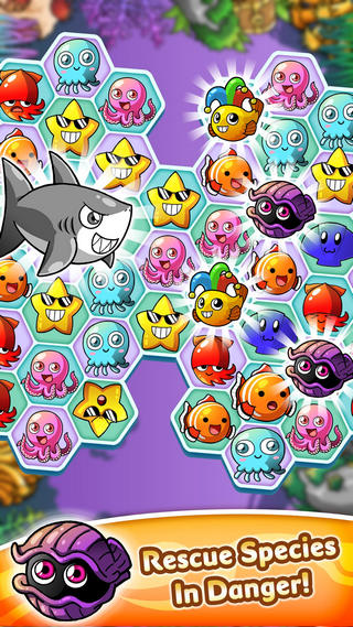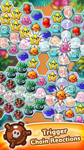 该游戏与经典的三消玩法不同,它以连线的方式为你消除更多海洋生物,让你能够尽可能多的消除这些生物,让自己轻松得高分。