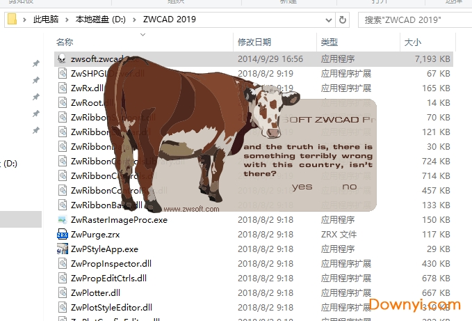 2、复制完毕之后,双击运行修改文件“zwsoft.zwcad.professional.v2019.exe”注册机,点击“yes”对原程序打入修改补丁(需要注意的是:修改补丁使用一次不一定成功,可以多试几次,直至修改完成)。