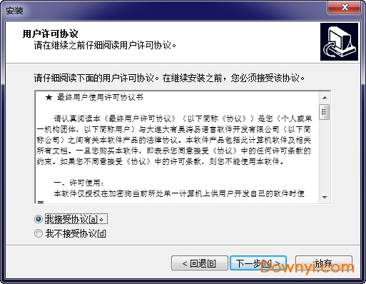 3、用户许可协议界面,“我接受协议”,下一步;