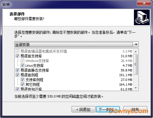 6、选择安装部件,默认即可,下一步;