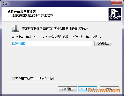 7、选择开始菜单文件夹,下一步;