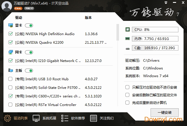 it天空万能驱动包是一款由十分受欢迎的电脑驱动安装工具,能够自动扫描计算机,无论是显卡驱动、声卡驱动、网卡驱动等等全都具备,快速安装最新的适合用户电脑的驱动,使用简单,兼容性强,欢迎来本站下载!