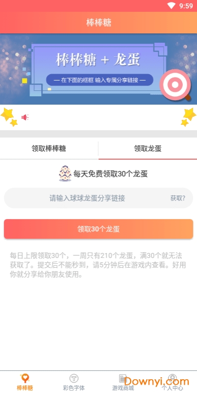 球球大作战棒棒糖助手是专门为广大玩家打造的棒棒糖领取工具,通过它大家每天可以领取五个棒棒糖和30个龙蛋,还能够修改彩色的游戏昵称,特别好用,需要的话可以本站下载