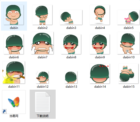 大兵QQ表情包,一个戴着贝垒帽的大兵,共有十七个QQ表情。此套表情提供的是GIF动画图片,你需用要手工添加到QQ表情中才能使用。