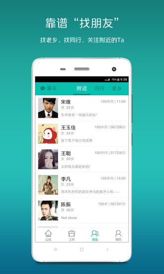 2、交友不再被动,轻松找到老乡、同行、和附近的ta