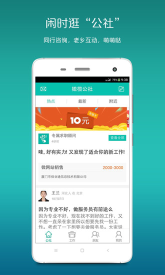 1、增加【公社】板块,同行咨询,老乡互动,萌萌哒