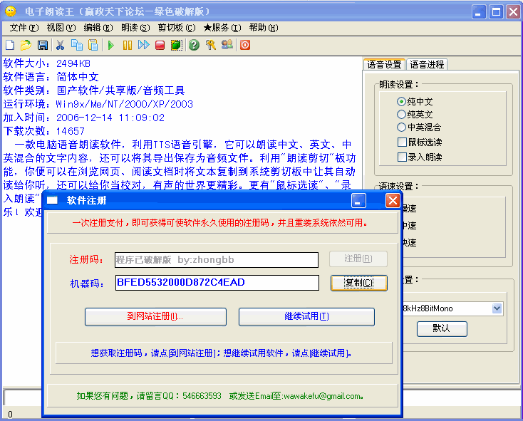 一款电脑语音朗读软件,利用TTS语音引擎,它可以朗读中文、英文、中英混合的文字内容,还可以将其导出保存为音频文件。利用"朗读剪切"板功能,你便可以在浏览网页、阅读文档时将文本复制到系统剪切板中让其自动读给你听,还可以给你当校对,有声的世界更精彩。更有"鼠标选读"、"录入朗读"更多超酷功能等待着您的使用。电子朗读王,读出你的精彩和快乐!欢迎您选择使用。