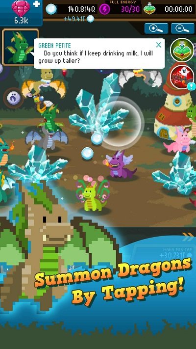 -点击屏幕产生法力,用你的法力召唤龙,即使在离线/空闲时也生成法力值
