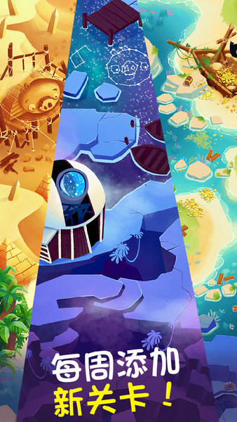 4、每局的环境都有专门为小鸟特殊功能优化的地方,让游戏的体验更和谐。大部分情况下,弹射出去的小鸟都需要额外的操作,虽然有更好的导向虚线,但整体难度实际上是提高了。游戏中对于物理特性的依赖也更强了,弹射等都是标准的对称。