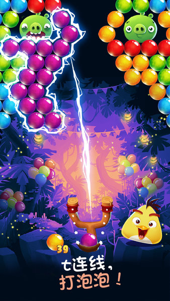 与史黛拉、怒鸟红、飞镖黄、炸弹黑以及其余angrybirds人物,一起爽玩这款射泡泡冒险游戏:泡泡无穷,挑战无尽!紧握心爱的弹弓,射出泡泡,打落猪猪,援救萌得不要不要的雏鸟。特别嘉宾、特别活动,时时推出;搞笑、新奇挑战,随时恭候您。成就越大,奖励肯定也越大!