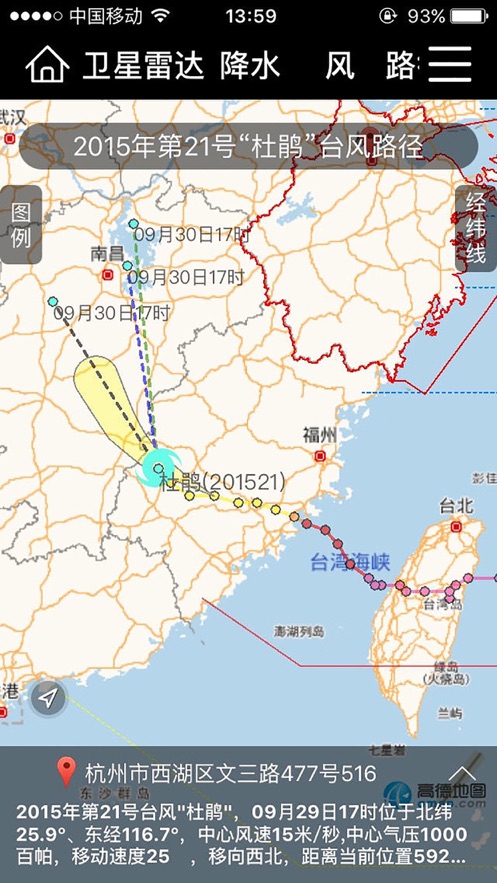 在“智慧气象”客户端上,用户不光可以查询到自己所处位置的天气预报,也可以通过定位系统,获取省内任意位置的气象环境信息。