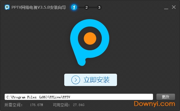 1.在本站下载pptv聚力安装包,运行安装文件,在弹出的窗口中(如下图)设置安装目录,点击立即安装;