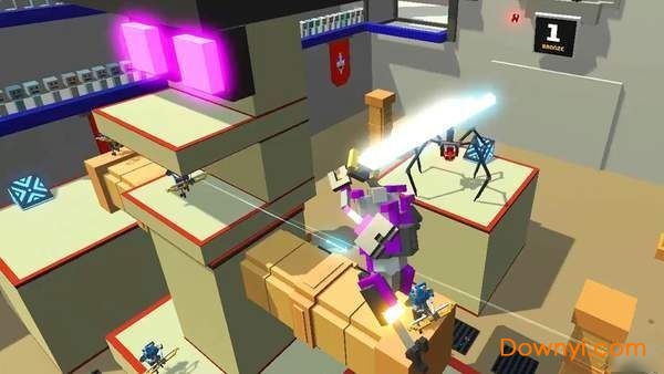 非常好玩的作战游戏,机器人的种类很多,他们可以装备光剑或者是机枪等等武器,在不同的场景里进行战斗,你可以利用火箭喷射器腾空而起。