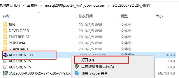 2、点击安装,这里以SQL Server 2000个人版为案例,其余的方法类似,如图: