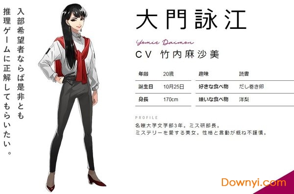 因升上大学而搬到名古屋居住的「泷纺」,是游戏的男主角。是个吊儿郎当浑浑噩噩度日的无业人士,但这看似平常的生活却出现了许多奇怪的谜团。就这样,主角与白痴长毛「诸户宫苍星」、命运般再相遇的「四辻琴子」等人,开启了随性破案的日常生活。游戏将集「小说 x 探索 x 侦探」三种元素,讲述一个特别的故事。崭新的际遇,永远的离别。在『无限可能』消失时,少年的手中还剩下什么?
