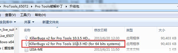 5、此刻我们再找到安装文件中“pro tools修改补丁/升级包/killerbugs v2 for pro tools”应用程序,进行升级。