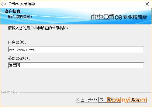 4.输入公司和用用户名,如下图,点击下一步: