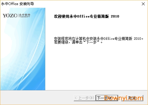 1.下载我们为您提供的永中office2010,解压之后双击exe文件,出现如下图: