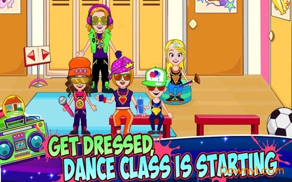 欢迎来到舞蹈学校,这是你的城镇必备场所。练习芭蕾舞课程,整装待发,加入拉拉队班级,准备你的舞蹈表演并自定义舞台。探索所有趣味场所、制服和乐器。与所有你喜爱的my town新角色一起玩吧!