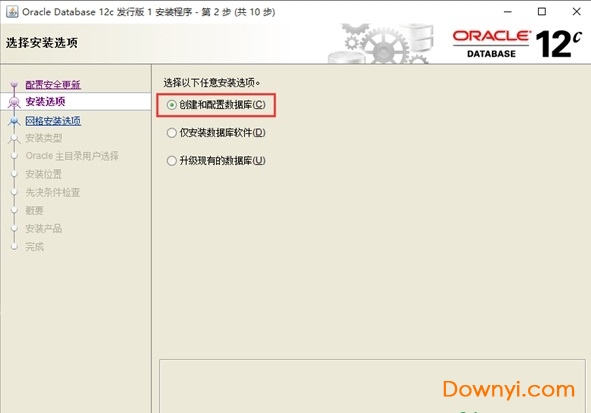 3创建和配置数据库:安装数据库软件并创建一个数据库实例,仅安装数据库软件:安装数据库软件,不会创建数据库实例,升级现有的数据库:升级低版本的oracle数据库: