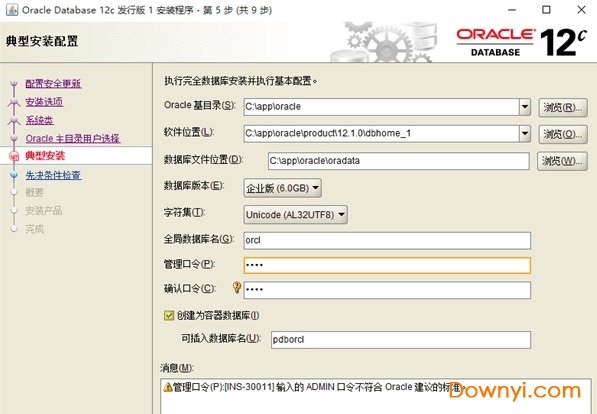 6主要设置安装位置,字符集选utf-8,然后是管理密码。如果密码设计太简单会报警告,不过可以忽略警告继续。其他有默认值的,也可以改为自己希望的那样。