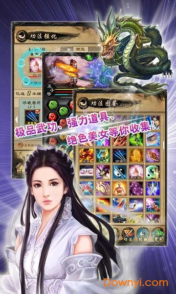 1.江湖厮杀,顶级功法必不可少,玩家可通过游戏中的功法系统强化和进阶功法,神级功法,傲视天下!