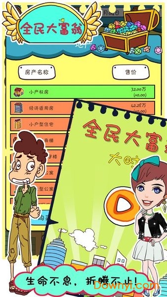 3、简洁可爱卡通风格的画面,夸张的漫画表情,让你在游戏中实现自己的首富之路;