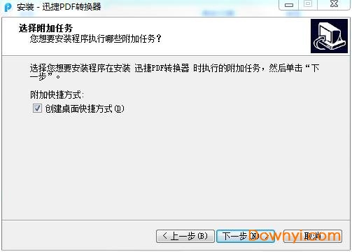 2、选择附加任务,选择创建桌面快捷方式。