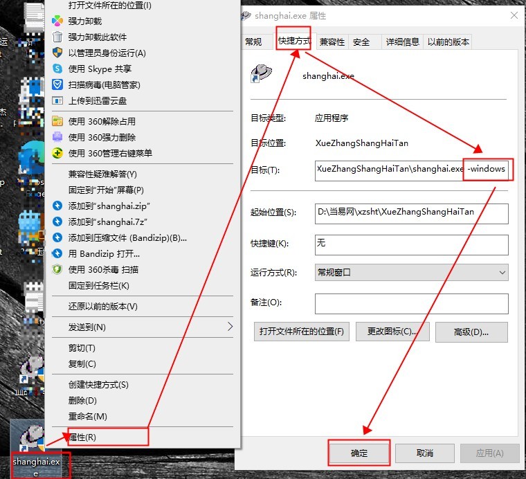 1、首先在桌面上创建shanghai.exe快捷方式。