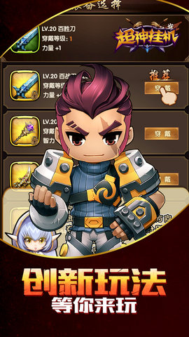 超神挂机手游是一款非常休闲的放置类策略游戏,全新的游戏剧情,给你展现一个新奇有趣的魔幻世界,使得这款游戏更加的二次元化,还有各种萌妹子陪你一起冒险闯关,让你的游戏过程不在枯燥无味。游法更是让玩家想怎么玩就怎么玩,赶快加入游戏吧,和我们一起体验不一样的游戏世界。
