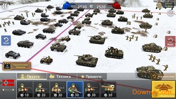 采用两军对垒的游戏模式,玩家们要不断的通过点击你的手指去放置更多的作战部队进行战斗,当然你会拥有非常多不用种类的战斗兵器,合理的进行武器的联合作战吧