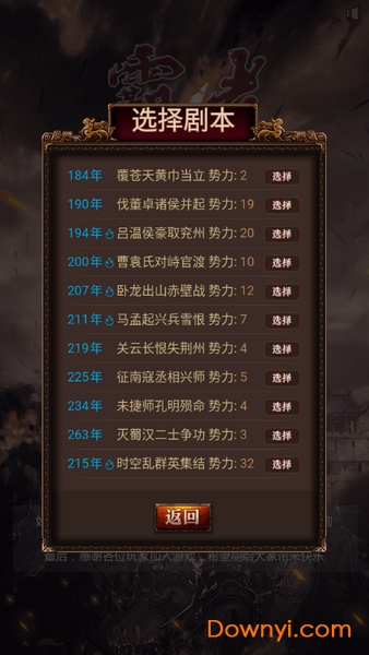 三国记霸者全剧本解锁版中你可以随意选择各种剧本,这里的剧本其实就相当于服务区一样,然后游戏的话主要是以文字策略为主,还是比较经典的,你可要选择提升内政,也可以选择外出征战,而且游戏还支持保存进度。感兴趣的话可以来本站下载体验。