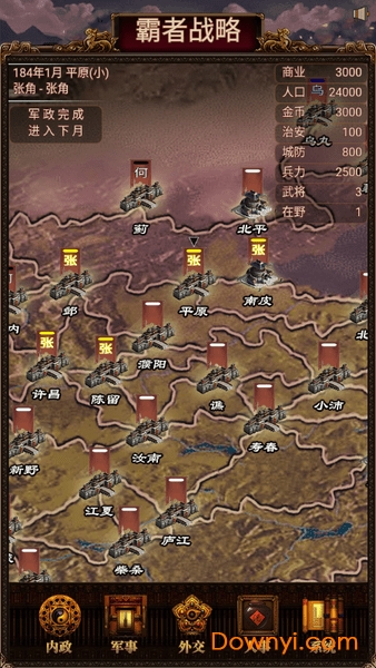 slg三国单机策略游戏,游戏中玩家可选择或自创君主,寻才探宝,壮大实力运筹帷幄之中,决胜千里之外,攻城略地,称霸中原。