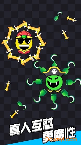 2、创新玩法的io类游戏,通过对一大堆飞刀的熟练操控来进行混战。