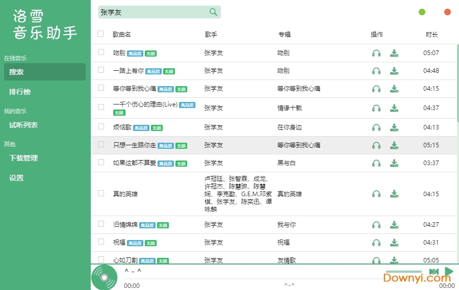 提供了普通、高品质、无损ape、无损flac等多种音质下载