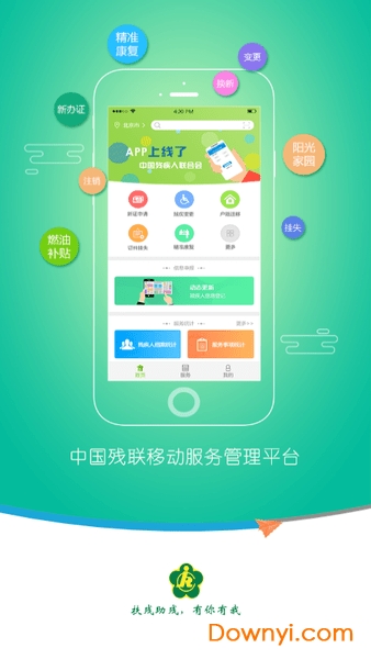 1、持证残疾人通过app注册并成功登录后,可实现在线申请“精准康复”“阳光家园”“燃油补贴”“家庭无障碍改造”“长江假肢”等服务(上述服务项目正在建设中,开通后另行下文通知);未持证残疾人,也可通过该app自助申请办理残疾人