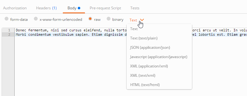 不同的body editor 分为4个区域,根据body类型有不同的控制。