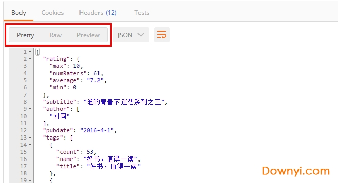 一般在用其他工具来测试的时候,response的内容通常都是纯文字的raw,但如果是json,就是塞成一整行的json。这会造成阅读的障碍,而postman可以针对response内容的格式自动美化。json、xml或是html都会整理成我们可以阅读的格式