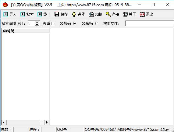 百度QQ号码搜索通过BAIDU.COM引擎快速搜集大量目标城市和行业的公司企业客户QQ号码的QQ号码搜索软件工具。